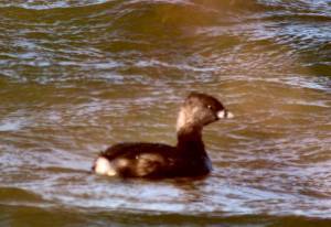 Common ducks seen in winter are Mallard, Northern Pintail, Gadwall, American Wigeon, Northern Shoveler, Green-winged Teal, Canvasback, Redhead, Ring-necked Duck, Bufflehead, and Ruddy Duck. Hooded Mergansers, egrets and herons frequent also along with a variety of shorebirds. A Common Morehen was sighted in July, 2006. Rarities: a Surf Scoter was seen on this pond in May, 1999.